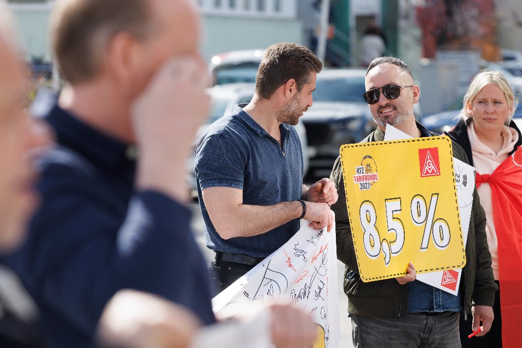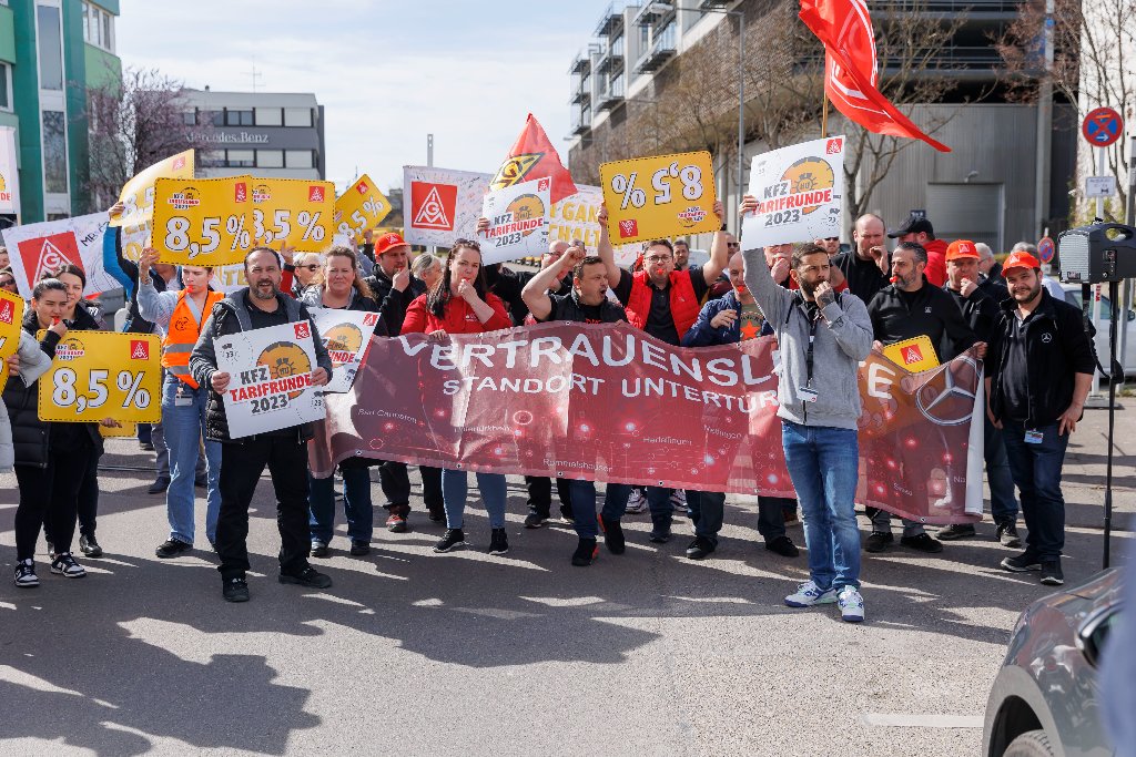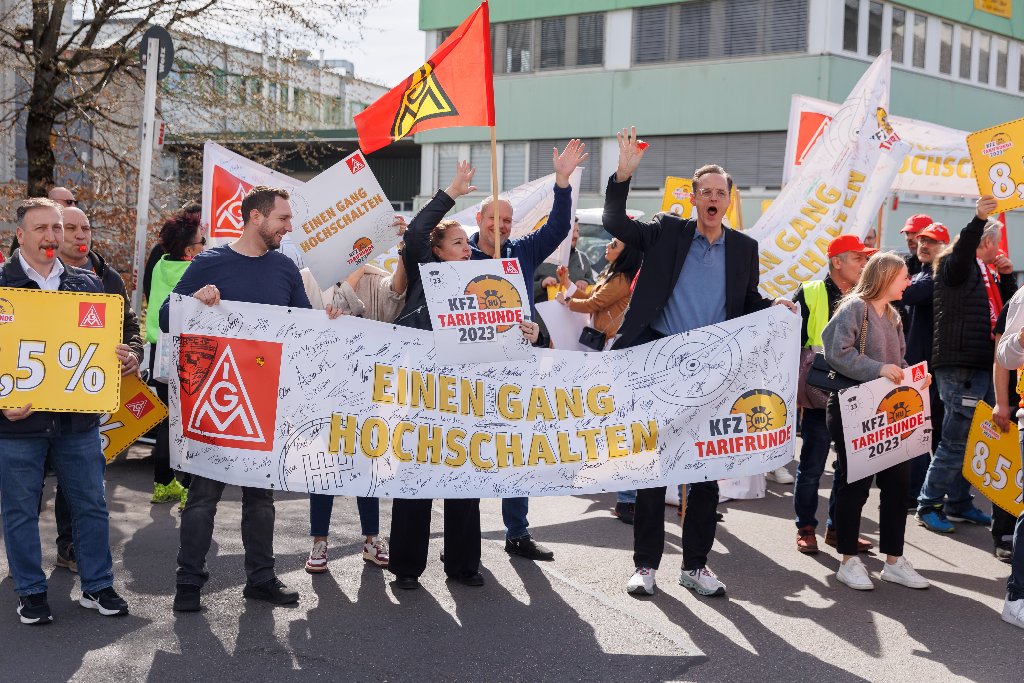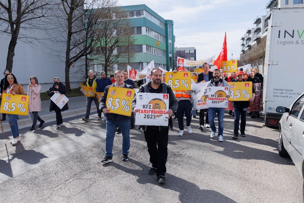 Am 22. März beteiligen sich 85 Betriebsrätinnen und Betriebsräte des Kfz-Handwerks der Region Stuttgart und Delegierte der Metall- und Elektroindustrie an einer symbolischen Forderungsübergabe an den Arbeitgeberverband im Zuge der anstehenden Tarifverhandlungen im Kfz-Handwerk. Die Beschäftigten des Kfz-Handwerks fordern 8,5 Prozent mehr Lohn und eine soziale Komponente in Form einer Inflationsausgleichsprämie und der Übernahme Ausgebildeter, deren Tarifvertrag im Jahr 2022 ausgelaufen ist. Die Laufzeit des neuen Tarifvertrages soll 12 Monate betragen. Hinter der Aktion versammeln sich u.a. die Betriebsratsgremien der Mercedes-Benz Niederlassungen Stuttgart, der BMW Niederlassungen Stuttgart, der Porsche Niederlassungen Stuttgart, der Volkswagen Automobile Stuttgart, OTLG, GTC-Mercedes-Benz und der Emil Frey Schwabengarage.