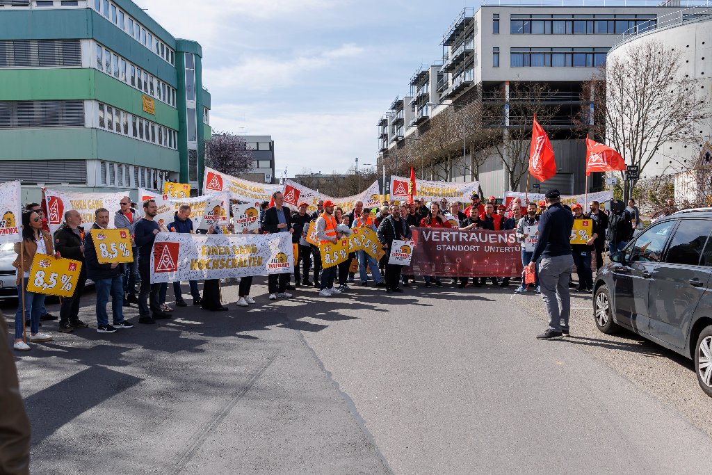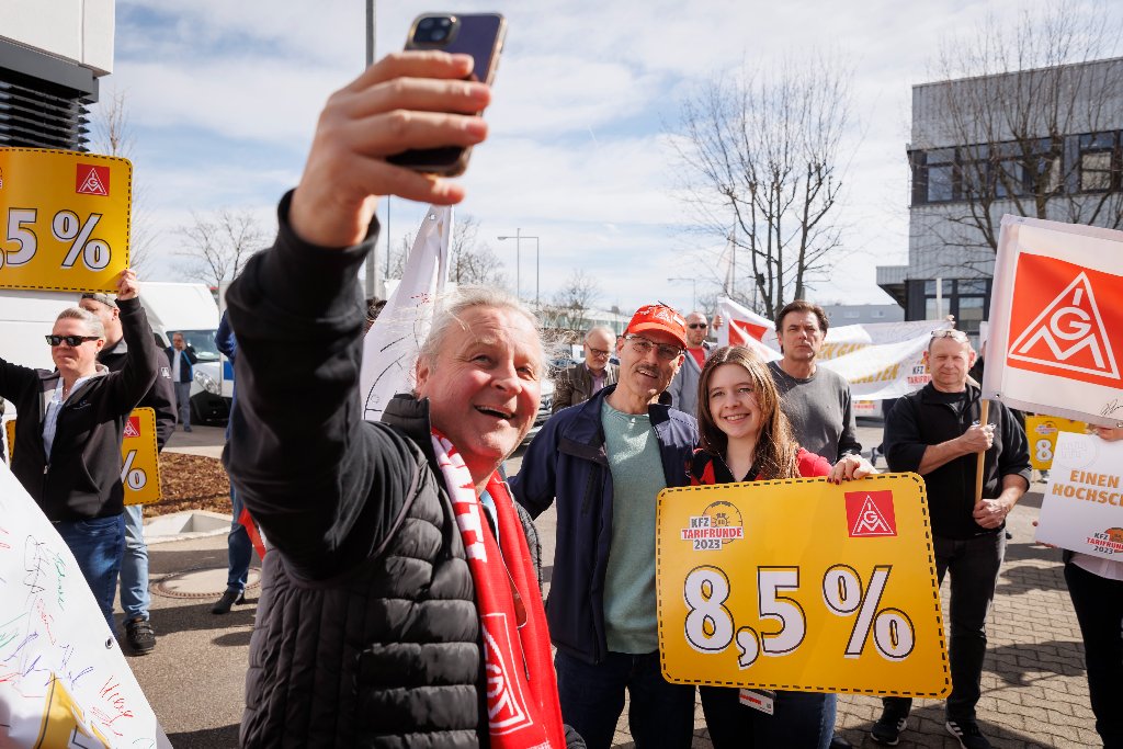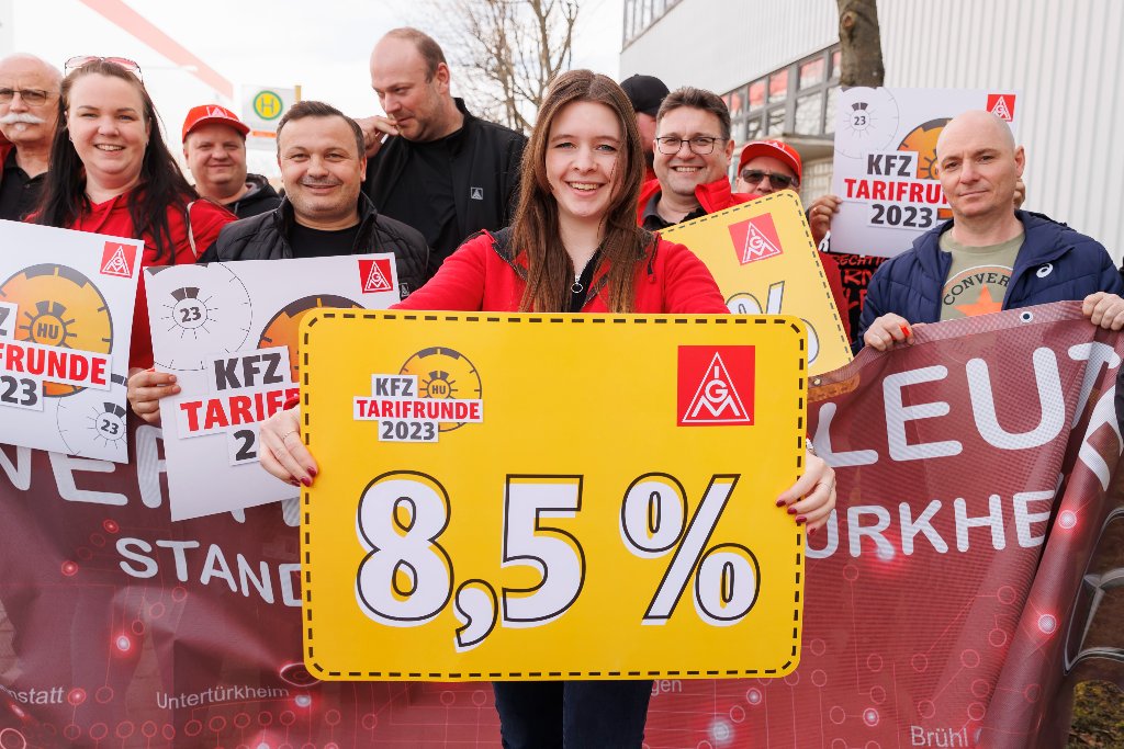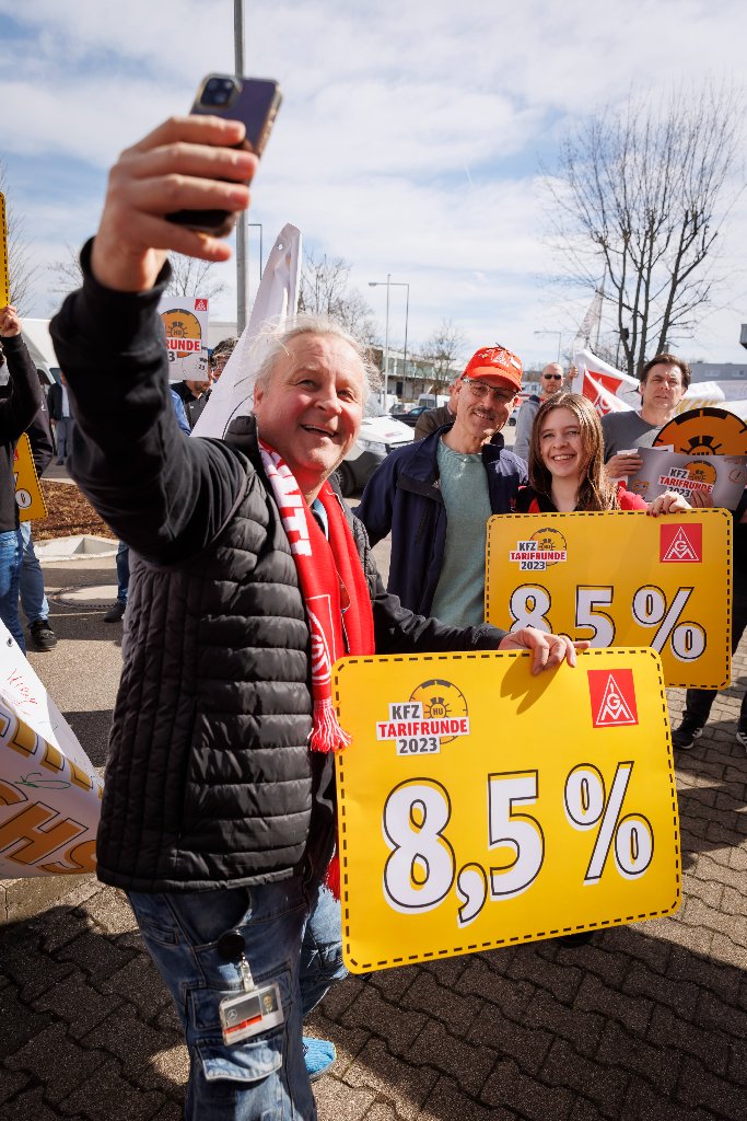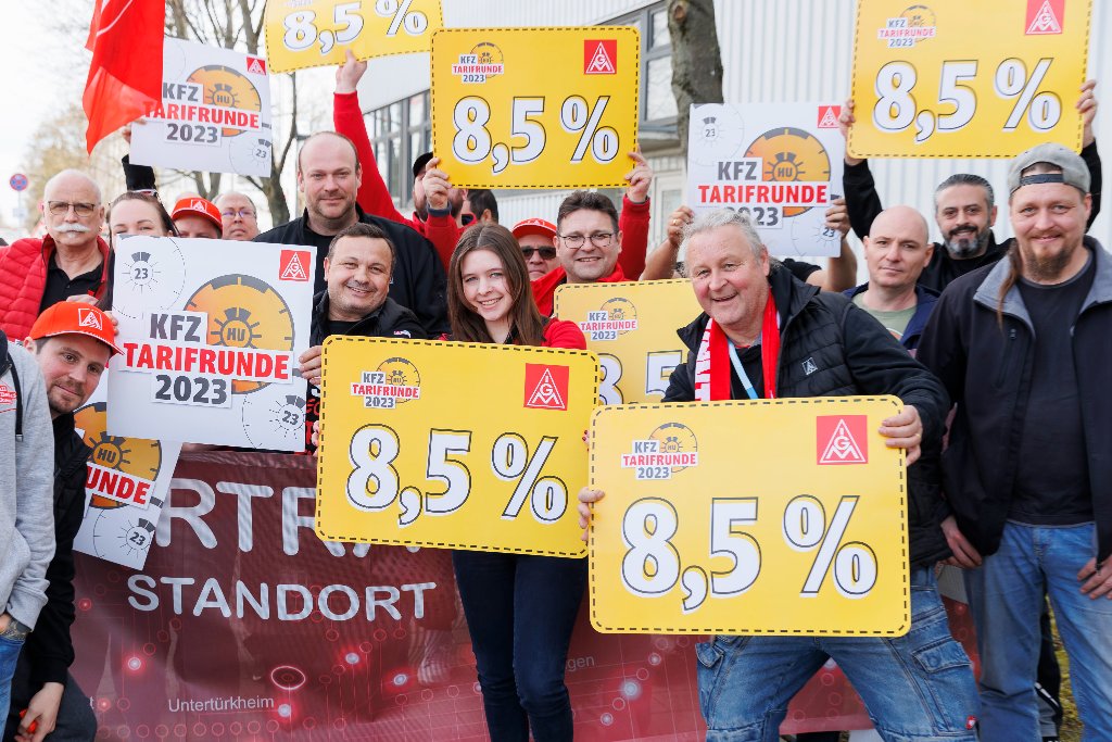 Am 22. März beteiligen sich 85 Betriebsrätinnen und Betriebsräte des Kfz-Handwerks der Region Stuttgart und Delegierte der Metall- und Elektroindustrie an einer symbolischen Forderungsübergabe an den Arbeitgeberverband im Zuge der anstehenden Tarifverhandlungen im Kfz-Handwerk. Die Beschäftigten des Kfz-Handwerks fordern 8,5 Prozent mehr Lohn und eine soziale Komponente in Form einer Inflationsausgleichsprämie und der Übernahme Ausgebildeter, deren Tarifvertrag im Jahr 2022 ausgelaufen ist. Die Laufzeit des neuen Tarifvertrages soll 12 Monate betragen. Hinter der Aktion versammeln sich u.a. die Betriebsratsgremien der Mercedes-Benz Niederlassungen Stuttgart, der BMW Niederlassungen Stuttgart, der Porsche Niederlassungen Stuttgart, der Volkswagen Automobile Stuttgart, OTLG, GTC-Mercedes-Benz und der Emil Frey Schwabengarage.