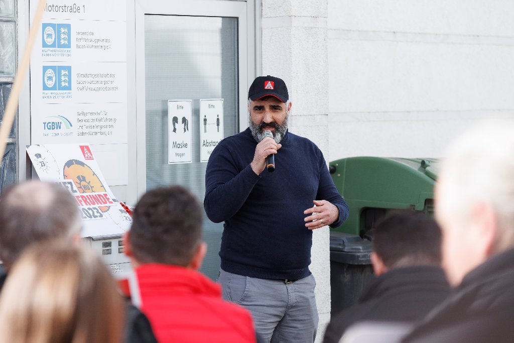 Tekin Yildirim, Mitglied der Verhandlungskommission und Gewerkschaftssekretär der IG Metall Region Stuttgart, sieht in der heutigen Aktion ein deutliches Signal für die Kampfbereitschaft der Beschäftigten für die anstehende Tarifrunde: "8,5 Prozent für die Zukunft und die Attraktivität des Kfz-Handwerks! Der Fachkräftebedarf in der Branche kann nur durch eine Attraktivitätssteigerung in Form von mehr Entgelt minimiert werden. Wir sehen massive Abwanderungstendenzen in die Metall- und Elektroindustrie - diesem Trend gilt es entschieden mit mehr Entgelt entgegenzutreten."''