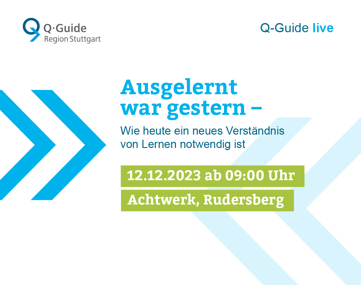 Wie dieses aussehen und umgesetzt werden kann, darum geht es bei der nächsten Q-Guide live-Veranstaltung mit dem Titel "Ausgelernt war gestern - Wie heute ein neues Verständnis von Lernen notwendig ist" am