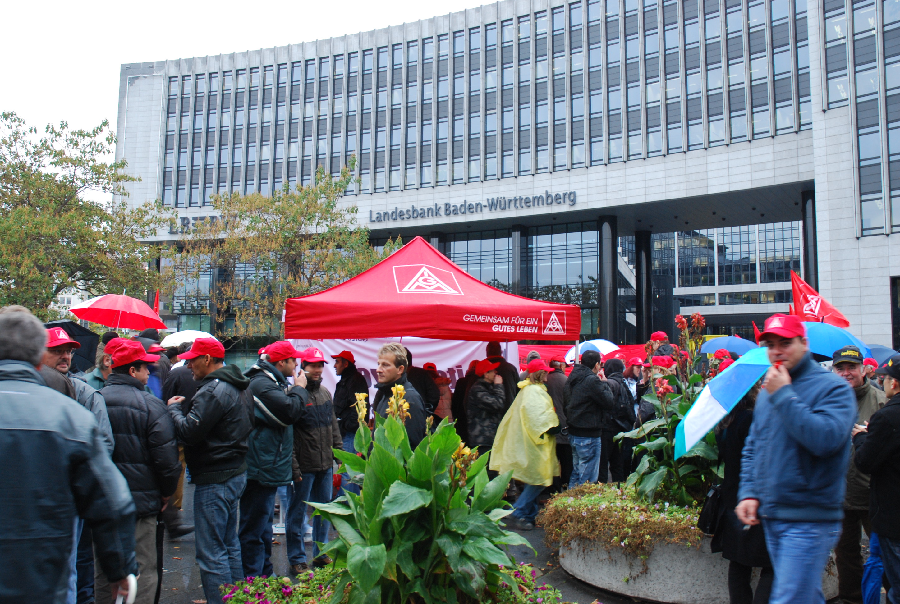Landesregierung und die Banken zum Umdenken auf. Die Krise darf nicht auf den Rücken der Beschäftigten ausgetragen werden!" so Konrad Ott, 1. Bevollmächtigter der IG Metall Ludwigsburg.