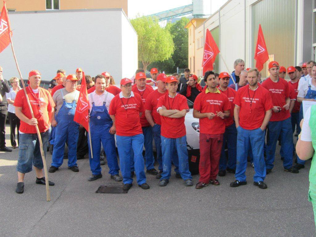 Auch im Kfz-Handwerk stehen neben dem Entgelt die Übernahme der Azubis und Regelungen zur Leiharbeit als Forderungen auf der Liste. Die Lohnforderung lautet auch hier: 6,5 Prozent. Die nächste Verhandlungsrunde ist für den 30. Mai 2012 geplant. Zwischenzeitlich haben auch schon einige Warnstreiks statt gefunden.