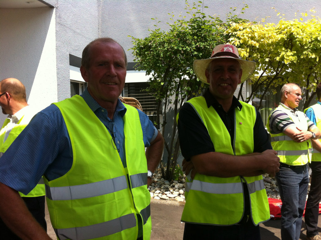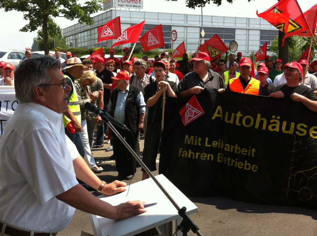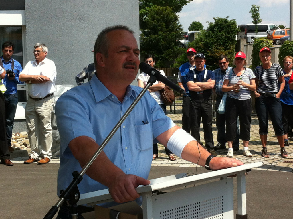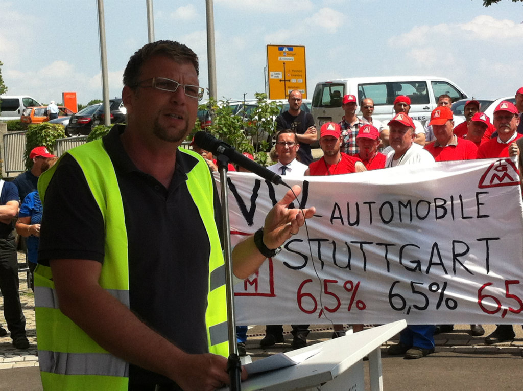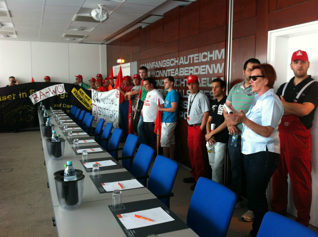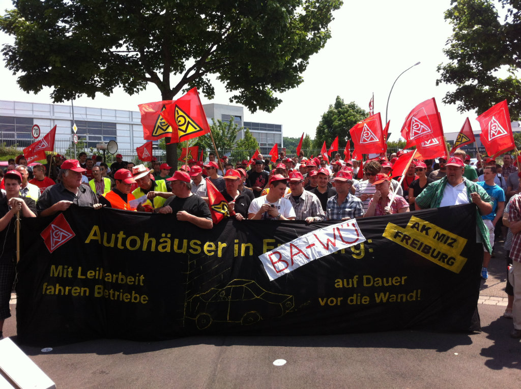 Über 700 Beschäftigte demonstrierten bei der entscheidenden dritten Tarifverhandlung am 30. Mai vor dem Verhandlungslokal in Korntal-Münchingen. Ihr "Besuch" bei der Arbeitgeber-Delegation im Verhandlungszimmer verlieh wohl noch einen letzten Nachdruck für das Tarifergebnis, das am Abend dann errreicht werden konnte.