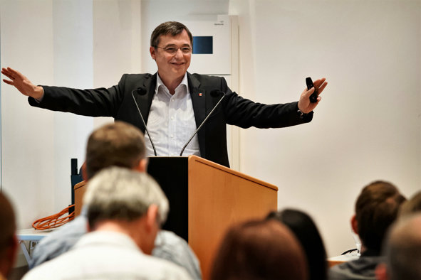 Diskutiert wurden die arbeitspolitischen Perspektiven für die Beschäftigten der Automobilindustrie in der Region Stuttgart. Neben theoretischen Ansätzen gab es zudem Redebeiträge, welche die Situation in den Betrieben veranschaulichten. Dabei gingen die Referenten auf diverse Themen ein: von Arbeitszeitflexibilisierung, über Work-Life-Balance, alterns- und altersgerechtes Arbeiten, Altersübergänge, Qualifikation, belastungsorientierte Rotationen bis hin zu besseren Arbeitsmitteln und Rentenregelungen.