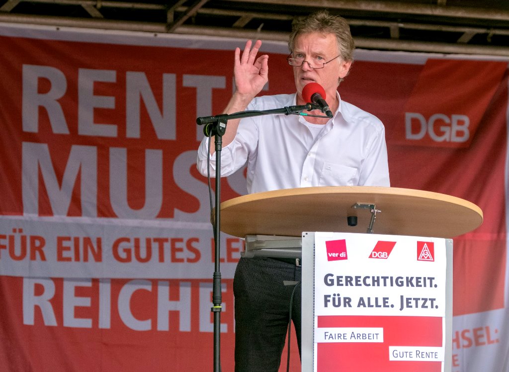 auf der Versammlung. Auch in Zukunft wird es Angriffe auf die Tarifverträge geben, befürchtet das IG Metall-Vorstandsmitglied. Die AfD verfolge ganz eindeutig das Ziel, die Mitwirkungs- und Beteiligungsrechte in den Betrieben